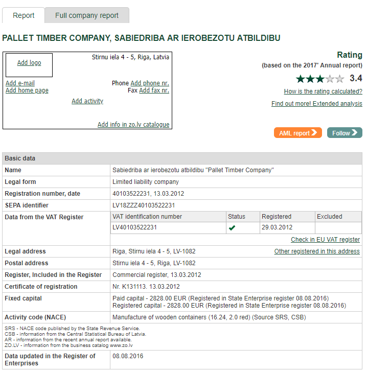 La compañía PALLET TIMBER COMPANY SIA es una empresa letona dedicada a la fabricación de productos de madera tridimensional y diferentes tipos de palets de madera desde 2012. La empresa solicita financiación de factoring para la fabricación de madera aserrada y pallets de madera.