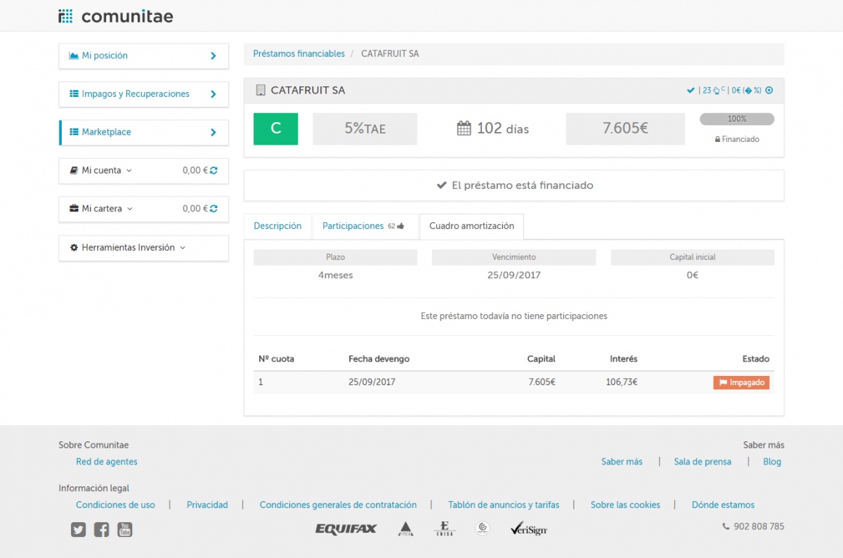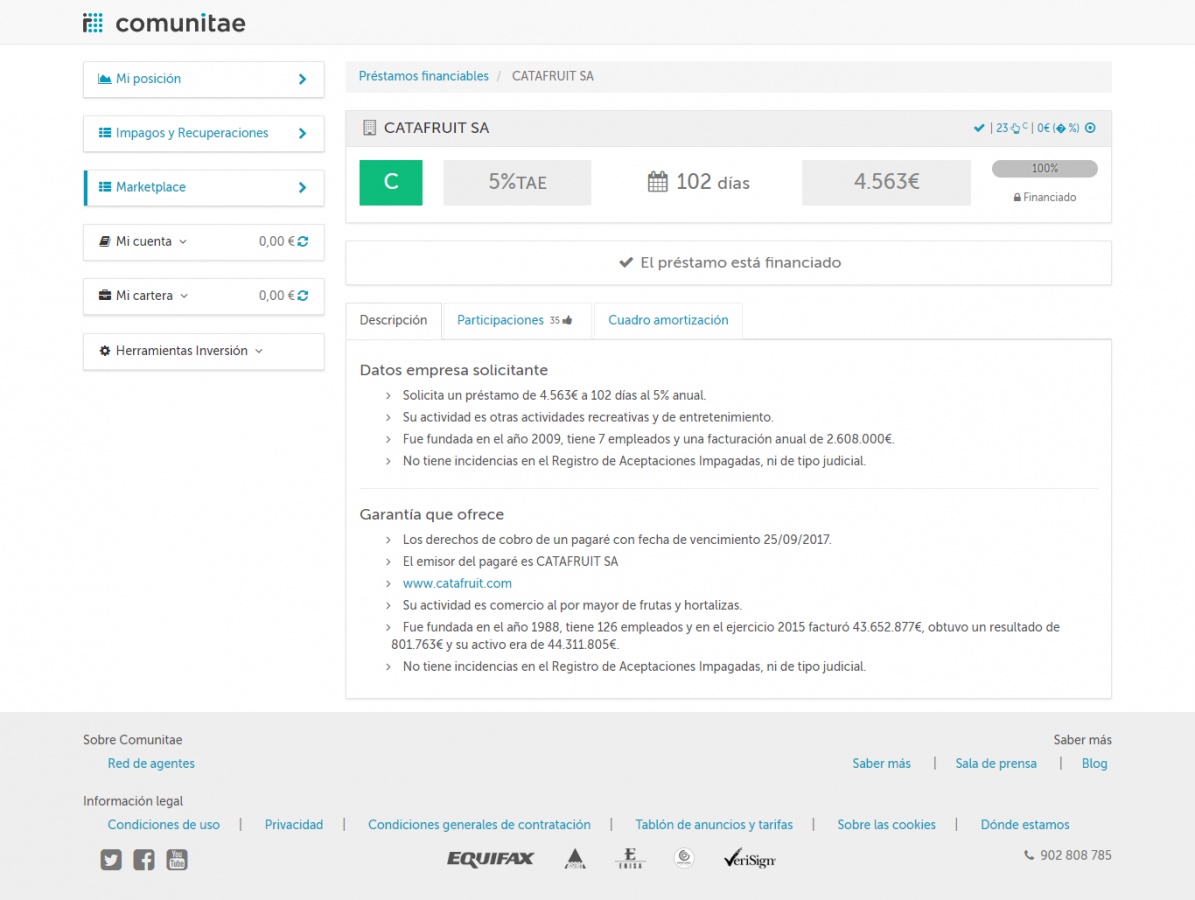 Yo me quedé enganchado con Ginefruit hace tiempo. Ya no invierto en Comunitae hece mucho pero además todas estas empresas de fruta me huelen a "podrido". Yo de vez en cuando aún meto el nombre del administrador de ginefruit en google porque estoy convencido que igual que hizo concurso acabará abriendo una nueva empresa, yo le sugiero SACAFRUIT. No sé si el nombre estará pillado.