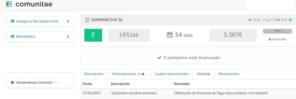 ojo tb con ivamancha S.L está con retrasos y tiene préstamos pagarés activos