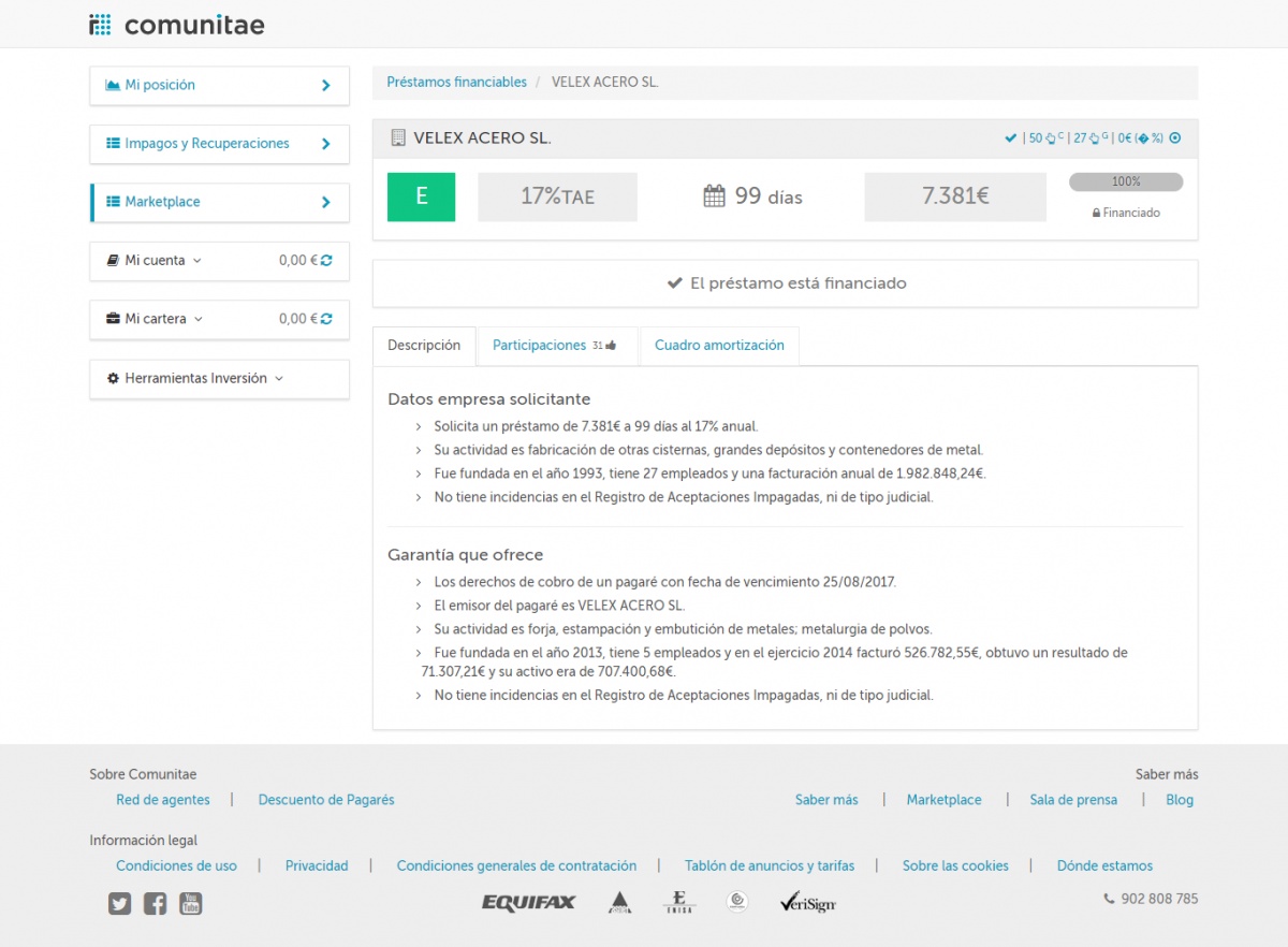 | Impago Velex acero S.L (4 pagarés) | K007 | Comunitae | 7 | 18-10-2017 00:43 |