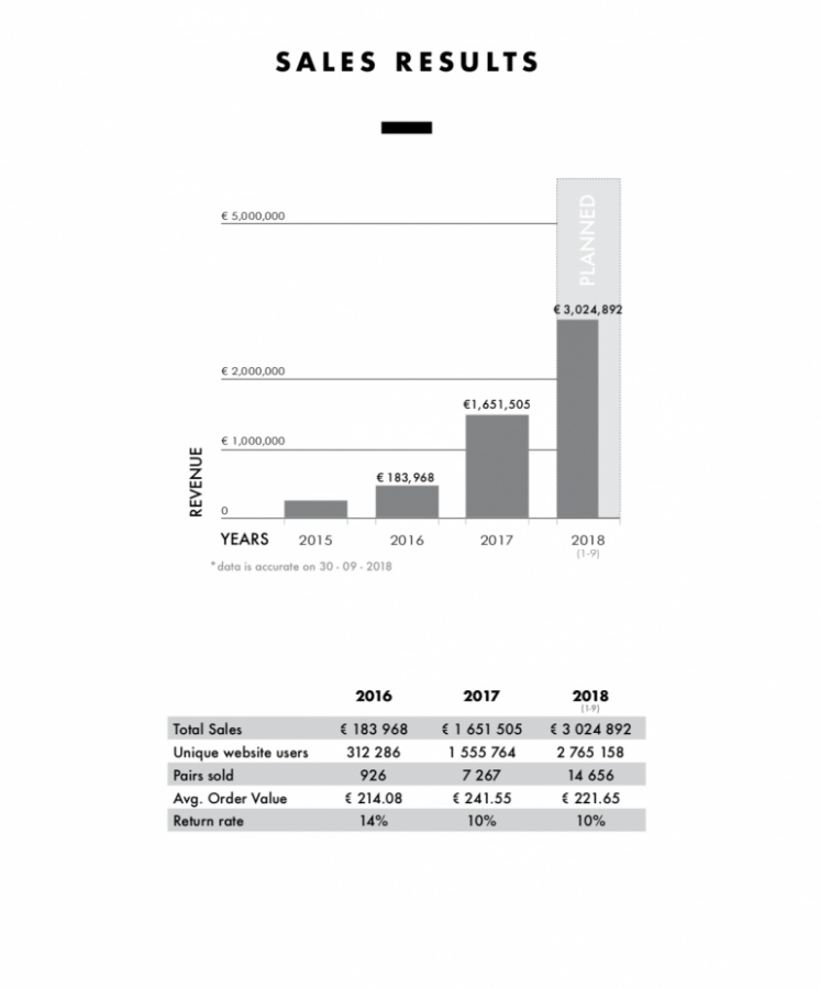 Sobre INCH2 La compañía fundada en 2015 por Olga y Edward Peterson y se dedica al diseño y venta de zapatos hechos a mano por internet. Olga es una joven y prometedora arquitecta y Edward es un experto en marketing online. Las campañas de marketing digital de INCH2 llegan a aproximadamente 20.000.000 personas por mes y, desde su fundación, la compañía ha vendido más de 22.000 pares de zapatos generando 183.968 EUR en 2016, 1.651.505 EUR en 2017, 2.834.892 EUR a finales de septiembre de 2018, y espera alcanzar alrededor de 5 millones en ventas a finales de 2018 con los principales mercados en los EEUU, Rusia, Alemania, Reino Unido y Francia. Estos llamativos y refinados diseños de INCH2 han impulsado a la marca a ser reconocida en todo el mundo y han logrado el apoyo de más de 700 000 seguidores comprometidos en Facebook e Instagram. Ahora la fabricación de INCH2 se extiende a los mejores zapateros de Europa. El calzado de la marca se produce en Portugal en las mismas instalaciones que marcas tan conocidas como KENZO, LANVIN, MAISON MARTIN MARGIELA, GIVENCHY y otras. Como un negocio de rápido crecimiento, INCH2 se enfrentó a una situación en la que la demanda de zapatos superó la capacidad de producción anterior, como resultado, el tiempo de entrega es de alrededor de 2 meses. INCH2 está buscando una inversión para expandir sus ventas en el mercado offline, posicionarse en las zonas principales lugares de compras, ampliar el stock para la colección de mujeres existente, así como también la colección y los bolsos para hombres lanzados recientemente. La compañía espera que después de acceder a los canales minoristas y reducir el tiempo de entrega de los pedidos en línea al tener un stock válido, aumente los pedidos de clientes leales a INCH2 en todo el mundo. Me sorprende el crecimiento exponencial en ventas de la compañía, es una muestra de que han encontrado un target que valora su producto y generan caja de forma recurrente.! La rentabilidad es muy atractiva y, aunque las proyecciones en este tipo de empresas no es fácil (no sé si habrá bonus), las necesidades que justifican la inversión me parecen correctas y el horizonte temporal de un año es razonable. Crowdestor ofrece información muy detallada del proyecto (presentación de INCH2, cuenta de resultados, balance...) disponible en el área privada para usuarios registrados y que motivos legales no reproducimos. Es la primera participación en la plataforma, así que vamos a empezar con 100 € 【 Bonificación 1% para nuevos clientes 】