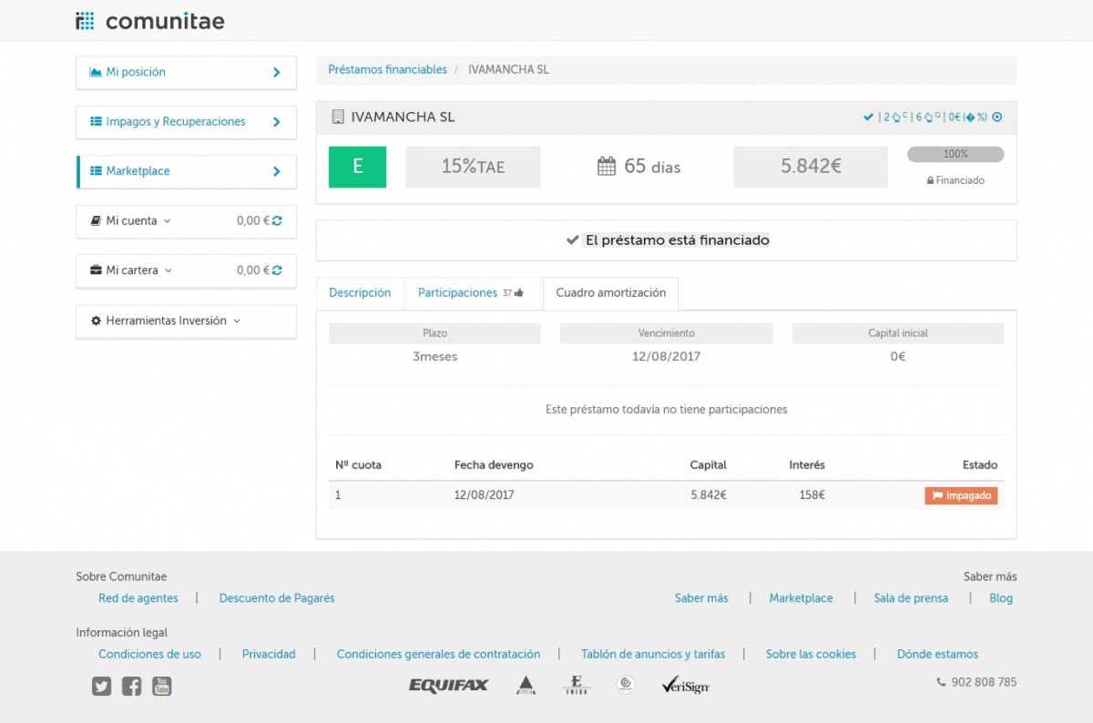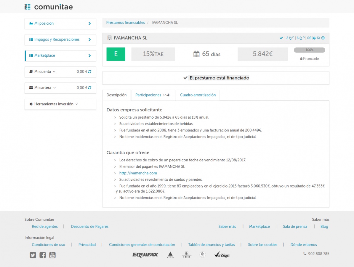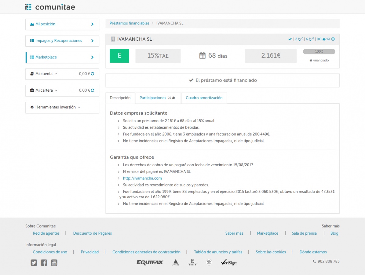 Yo tengo un préstamo impagado desde hace más de un año de esta empresa en Loanbook. Parece que la empresa se ha dedicado a desfalcar a toda empresa de crowlending que ha podido antes de llevare nuestra pasta