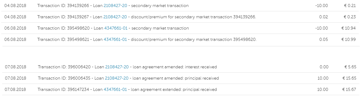 He comprado varios préstamos de estos con 0.4%-0.5% de prima (Varks y Sebo en concreto) y me los han recomprado a los dos días, por lo que el YTM del 13% que iba a obtener es un espejismo. De hecho, de un préstamo ni siquiera aparece la fila de intereses abonados dado que se recompró al día siguiente. Al final voy a tener que dar la razón a @Melqui que criticaba las recompras que hacía originador de préstamos a los pocos días de haber invertido por ser una pérdida de tiempo (y dinero) para el inversor que tiene que volver a colocar el dinero. Recompras sí, pero cuando no antes de tiempo!. Saludos