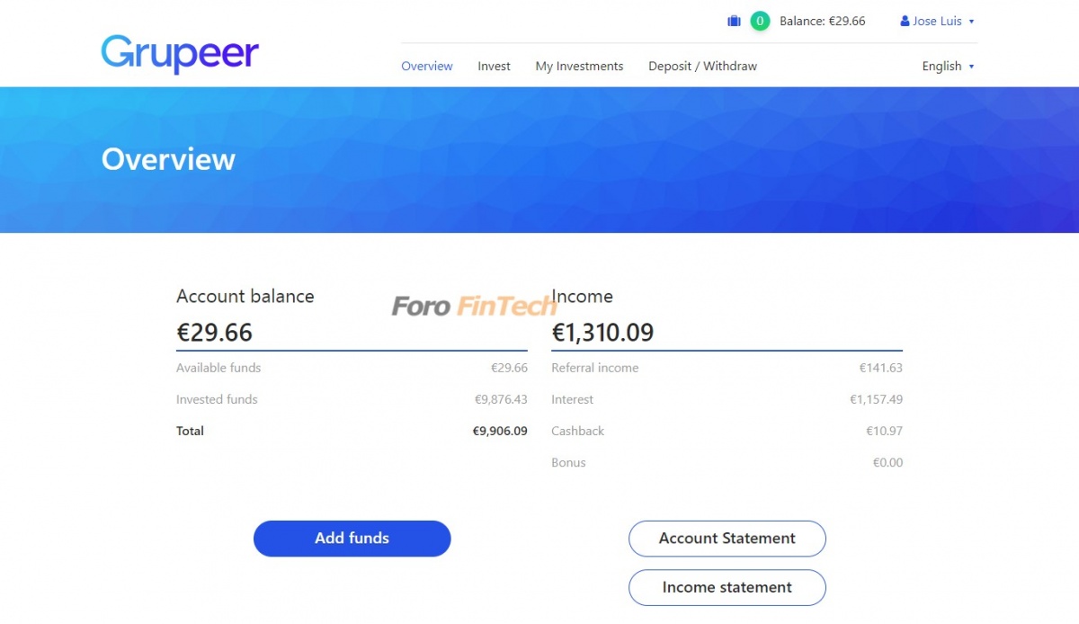 .- Las amortizaciones de capital son a vencimiento por lo que solo vas viendo los intereses. .- Están pendientes de cambiar de país, según anunciaron de letonia a estonia y lo que ello suponga. .- no hay auto-invest .- necesitan pulir el interfaz de inversión manual, para al menos poder saber en que préstamos has invertido sin tener que puntear uno a uno. .- no hay extracto periódico por email .- no hay notificaciones de pagos, hay que consultar on-line, el dinero vencido puede estar parado sin producir. .- siempre han pagado puntualmente hasta la fecha, por lo que es difícil saber si han sido pagados por el BB o es que sus prestatarios son puntualmente pagadores .- no hay cifras de retrasos ni defaults .- los préstamos BB incluyen capital +interes, pero como digo no ha habido ninguno que se sepa por lo que es difícil saber la operativa. .- son pequeños, lo que puede ser bueno o malo según se mire y lo considere cada uno. .- mantienen un programa de referidos. .- son rápidos en procesar los ingresos y reintegros. .- atienden correctamente las consultas de soporte .- el propietario de la plataforma (y de algún originator de préstamos Kontour, Dominique Hotel) participa con su capital en los préstamos (skin in the game), por lo que puede ser el primer interesado en la viabilidad de los mismos. creo que son aptos para un volumen bajo en número de inversiones (el importe invertido allá cada cual), visitando y consultando la plataforma mensualmente para reinvertir los rendimientos y amortizaciones del mes. el tiempo dirá como evoluciona nota: si hay subforo abierto para grupeer, todo lo antedicho es únicamente mi opinión.