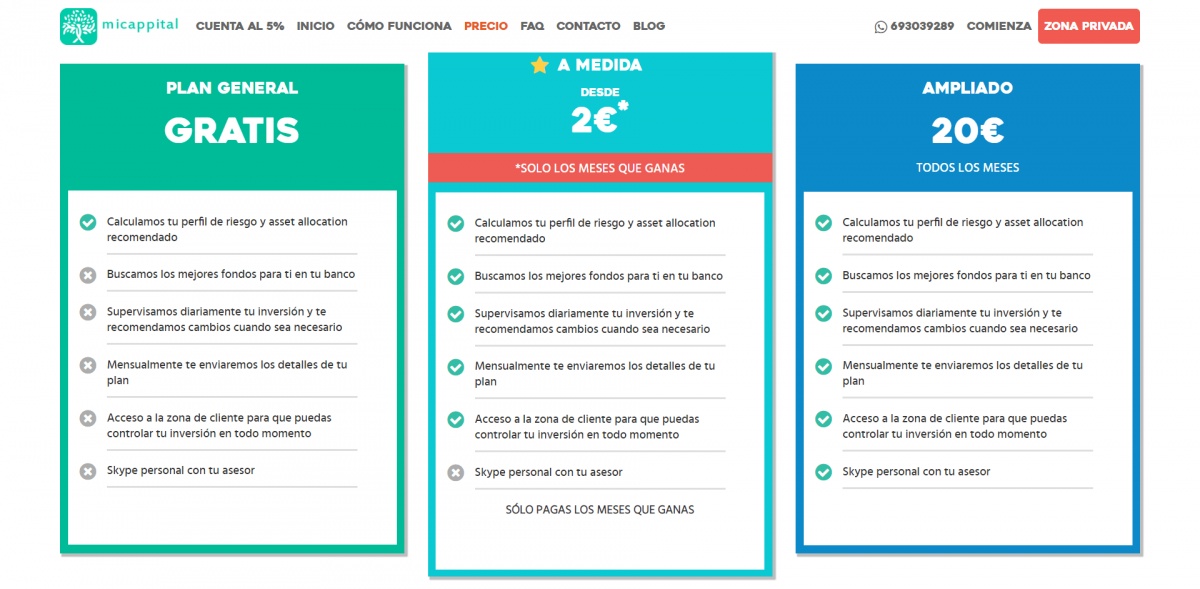 Planes de Micappital Micappital tiene 3 planes: