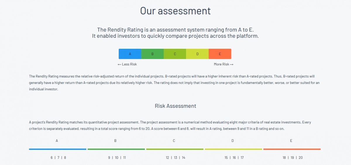 Rating Rendity tiene un sistema de rating (A-E) en función de los puntos obtenidos por el proyecto (6-20). Los criterios de puntuación están disponibles en su web y valora aspectos como: localización, grado de ocupación, duración de la promoción; porcentaje de ventas, etc... Aspectos importantes