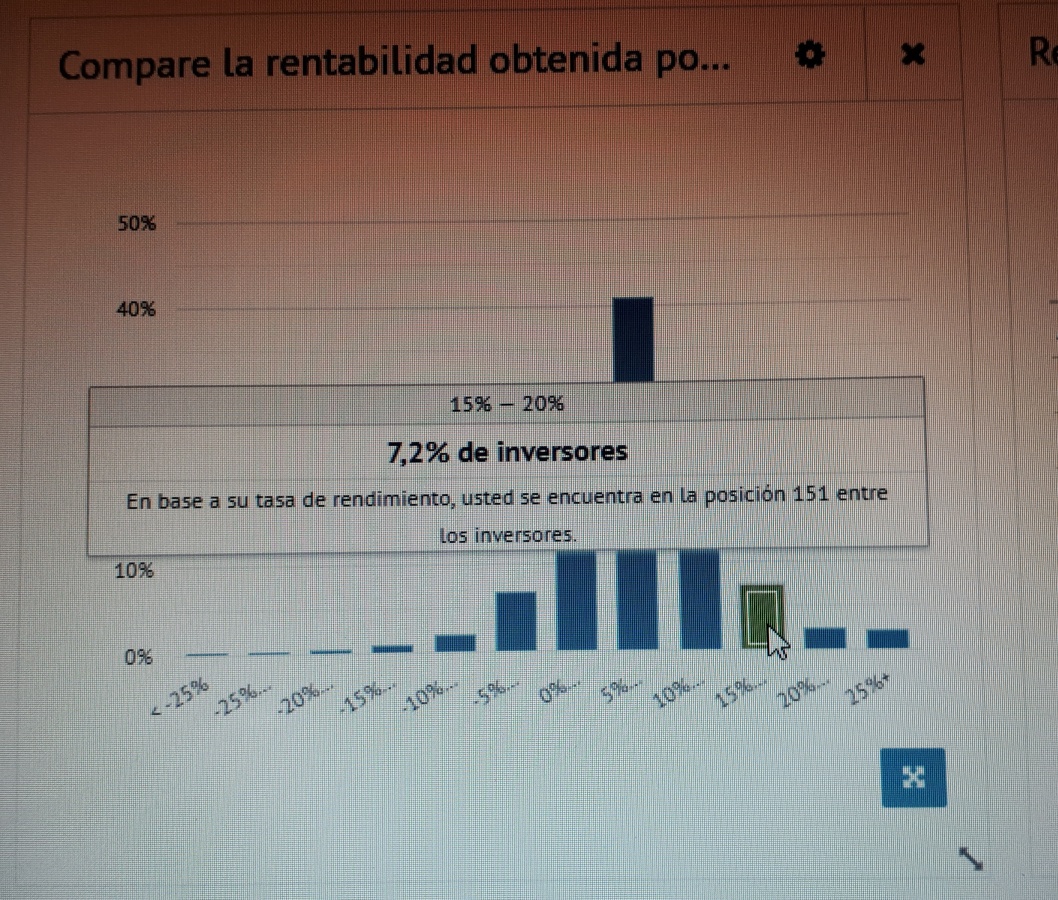 En agosto hará 1 año que empecé despacio en esta plataforma Esos números indican según dicen que es el rendimiento esperado de la cartera en función del saldo original, que no sé qué significa. El 18,24% es la rentabilidad actual descontadas las deudas incobrables, según pone Sé que es una plataforma que no te gusta nada, soy prudente y sé el riesgo que corro pero como he dicho creo que merece la pena arriesgar un poco dada la buena rentabilidad. El primer ingreso que hice en la plataforma fueron casi todos los beneficios que tuve en los 7 meses del año pasado que eran muy pocos (estaba empezando) con lo que si los perdía, no perdía capital, sino intereses. Lo hice desde ese punto de vista. Saludos