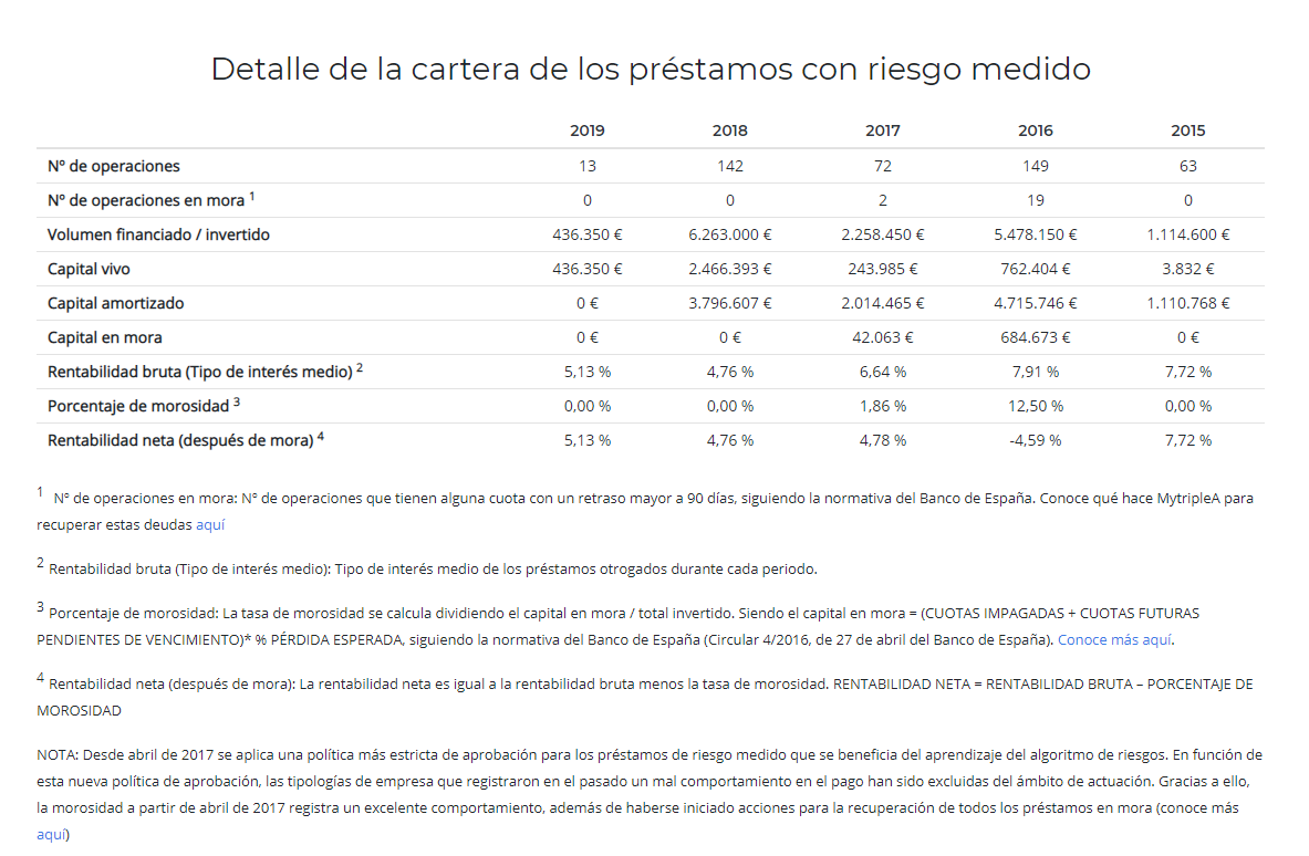 Hago referencia a esta nota: NOTA: Desde abril de 2017 se aplica una política más estricta de aprobación para los préstamos de riesgo medido que se beneficia del aprendizaje del algoritmo de riesgos. En función de esta nueva política de aprobación, las tipologías de empresa que registraron en el pasado un mal comportamiento en el pago han sido excluidas del ámbito de actuación. Gracias a ello, la morosidad a partir de abril de 2017 registra un excelente comportamiento, además de haberse iniciado acciones para la recuperación de todos los préstamos en mora Igualmente agradecer el comentario porque así revisaremos la redacción del párrafo, ya que no queremos que cause confusión. Un saludo |