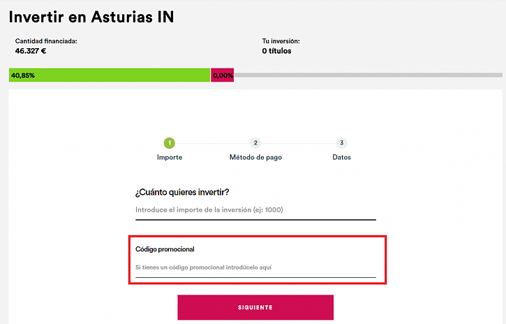 Que yo sepa Inveslar, puedes hacer todas las inversiones con tarjeta o con transferencia y no tiene comisión el pagar con tarjeta. Se dedica al crowdlending inmobiliario, tipo Housers. Puedes invertir desde 100€. Acaban de inaugurar el mercado secundario de forma que puedas vender tus títulos en caso de necesitar liquidez, lo cual es un punto positivo. Si te interesa, date de alta desde el siguiente enlace donde verás nuestro código amigo y recibirás 25€ de forma inmediata. Ir a Inveslar Esta semana tienen una promo adicional que de tan un 5% adicional si inviertes antes del 8 de marzo. Me imagino que es porque quieren cerrar la financiación del proyecto que tienen colgado. ![]() Código promocional para conseguir el 5% adicional Para beneficiarte de esta promoción, debes introducir el código ASTURIASIN en el campo código promocional que verás al hacer la inversión. El abono de ese 5% te lo harán el 12 de marzo. ![]() Saludos